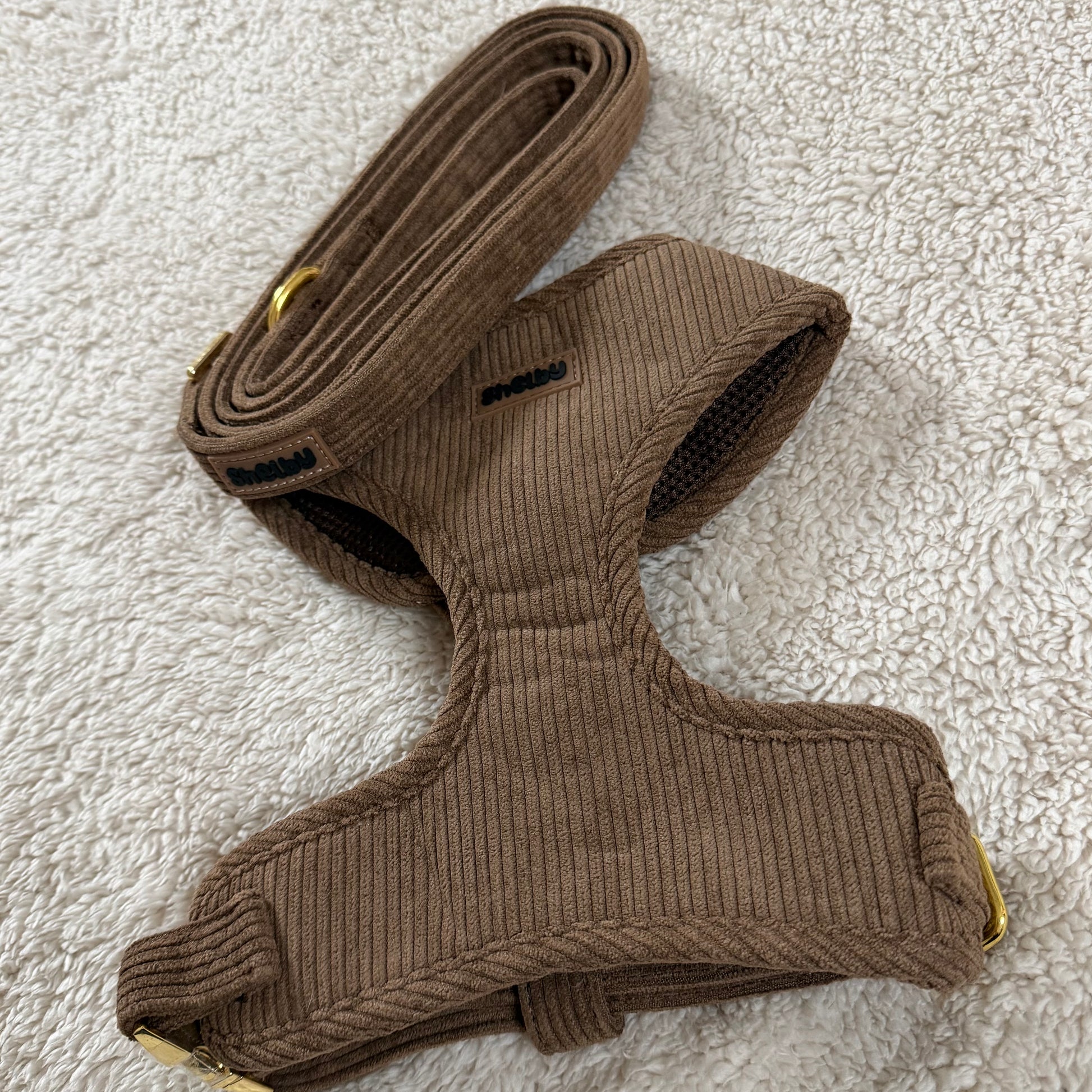 Le harnais en velours côtelé offre un maintien sûr et confortable grâce à ses ajusteurs métalliques et à la texture douce du velours côtelé. Son design ergonomique répartit la pression uniformément, assurant confort et style à chaque promenade ! 🌲 🐶
